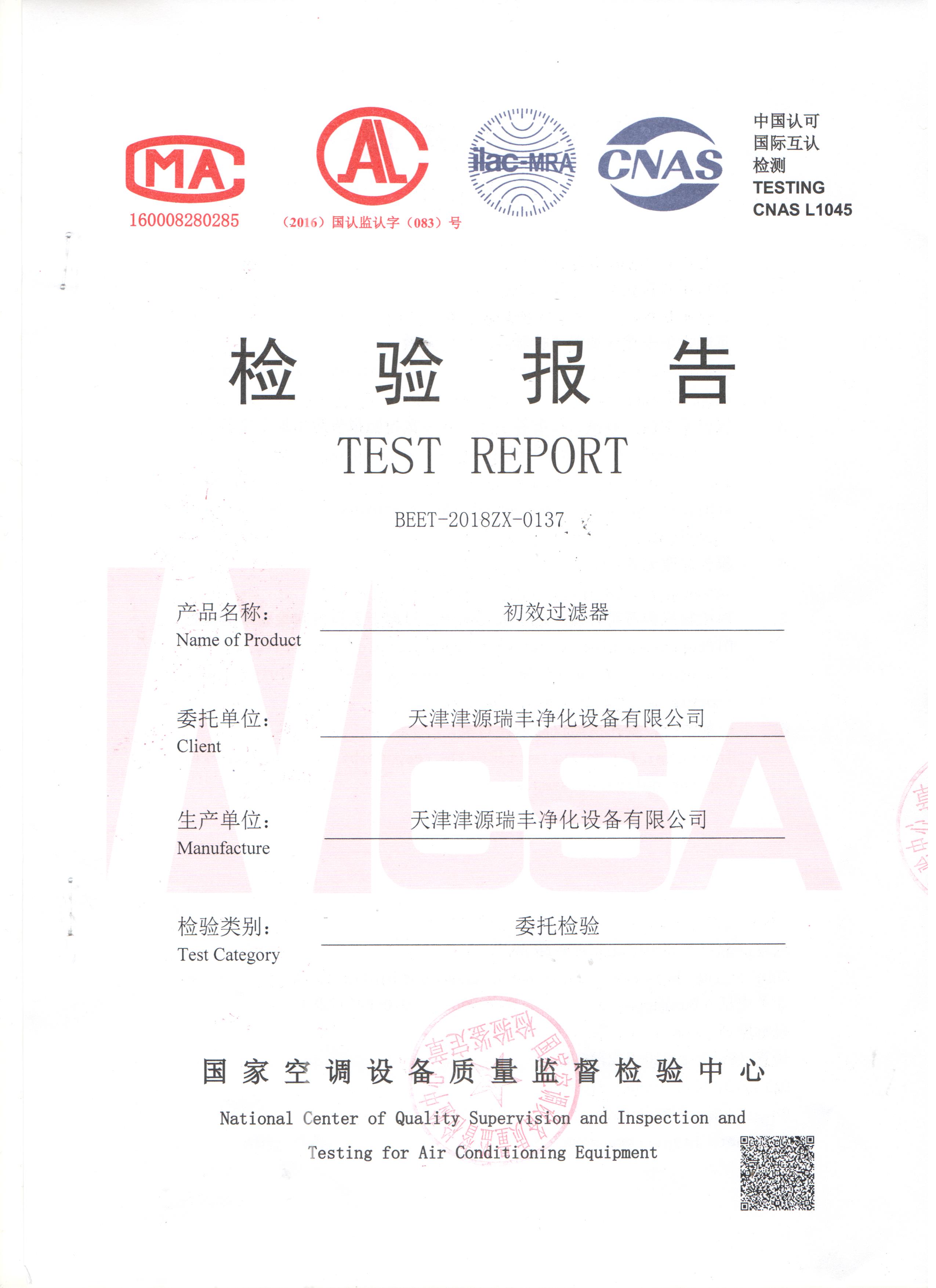 初效過濾器檢測報(bào)告